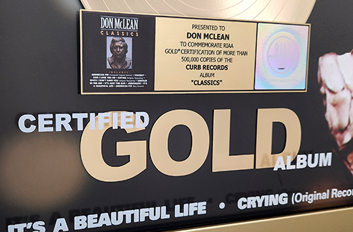 View All Don McLean Classics Certified Gold (r) Album SHARE Contact Us Jan 02 — 2025 Certified Gold® Click Image to Enlarge Click Image to Enlarge Click Image to Enlarge Click Image to Enlarge Click Image to Enlarge 01 / 05
